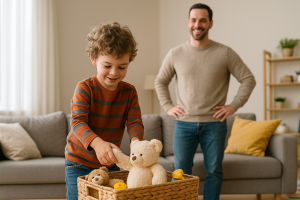 “Great job putting your toys away — very responsible!”
